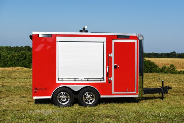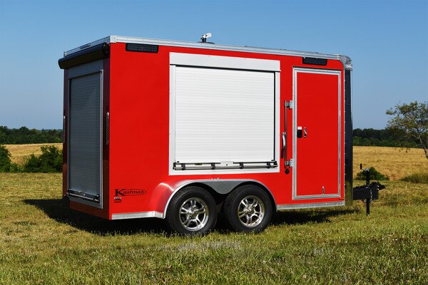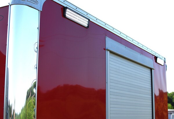 - 3 Roll Up Door for easy access. One on each side for compressor ventilation and one on the rear of the trailer.