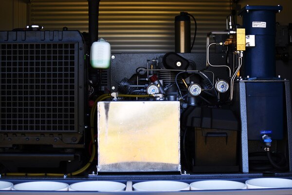- Four 6000 PSI UN storage cylinders, to hold 2040 cubic feet of stored air. The Cylinders will be housed in a Rack that will be sitting under the compressor in the center of the trailer.