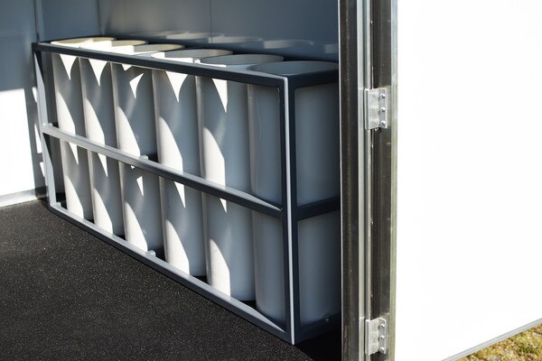 - The SCBA rack is optional and has spaces for up to 12 spare bottles.